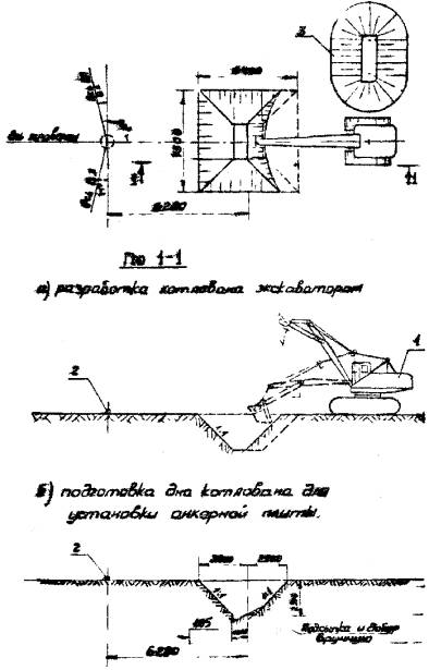 б) разработка экскаватором котлованов для анкерных плит (рис. 2-1, 2-2, 2-3);