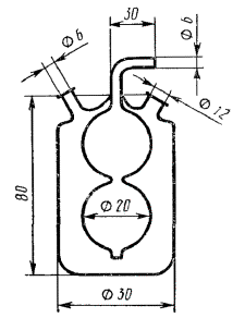 Склянку Дрекселя (черт. 3) наполняют серной кислотой в таком объеме, чтобы внутренний конец полого шарика был погружен в кислоту на 4 - 5 мм.