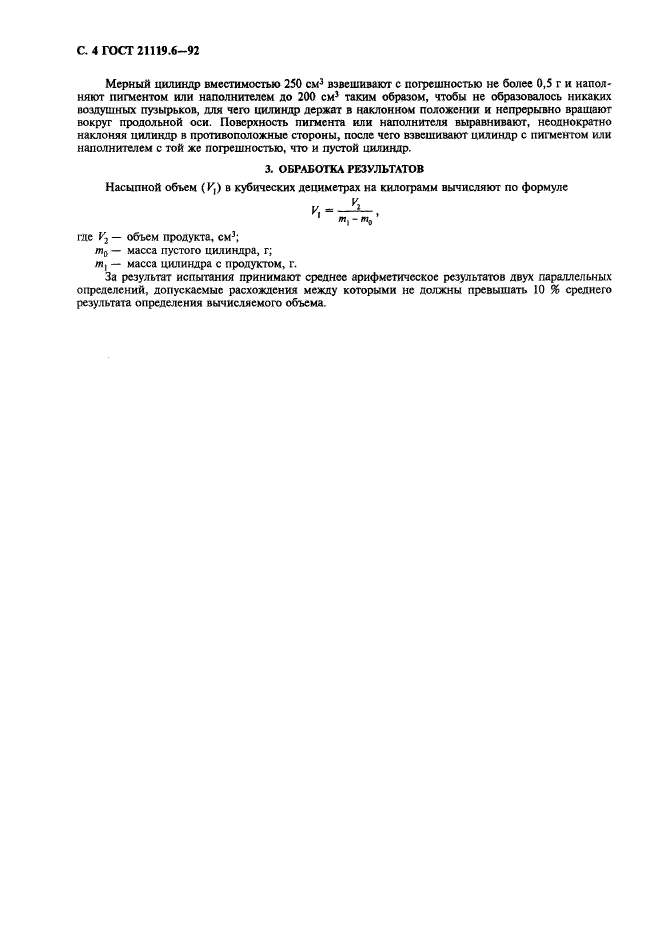Настоящий стандарт распространяется на пигменты и наполнители и устанавливает методы определения уплотненного объема, кажущейся плотности после уплотнения и насыпного объема