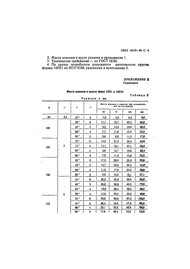 Настоящий стандарт распространяется на алмазные шлифовальные плоские круги с двусторонним коническим профилем форм 1ЕЕ1 и 14ЕЕ1 с относительной концентрацией алмазов 50, 75, 100 и 150, изготовляемые для нужд народного хозяйства и экспорта