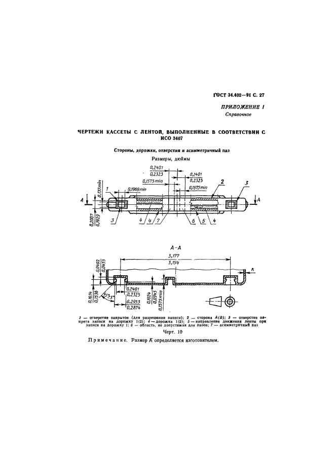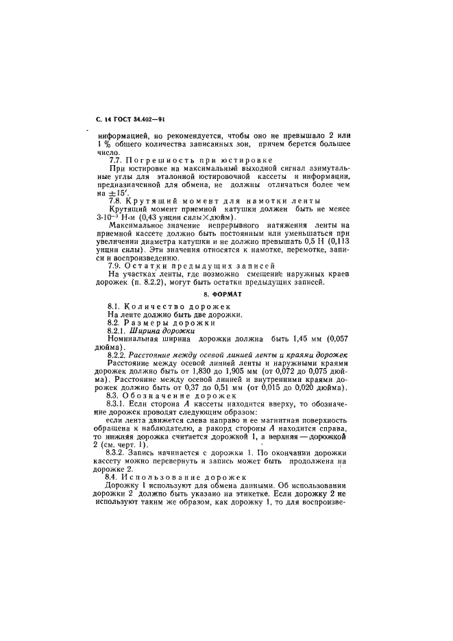 | Название рус.: | Информационная технология. Обмен информацией на кассете с магнитной лентой шириной 3,81 мм (0,15 дюйма) с плотностью записи 4 символа/мм (100 символов/дюйм) способом фазового кодирования при 63 переходах потоков/мм (1600 переходов потока/дюйм) |