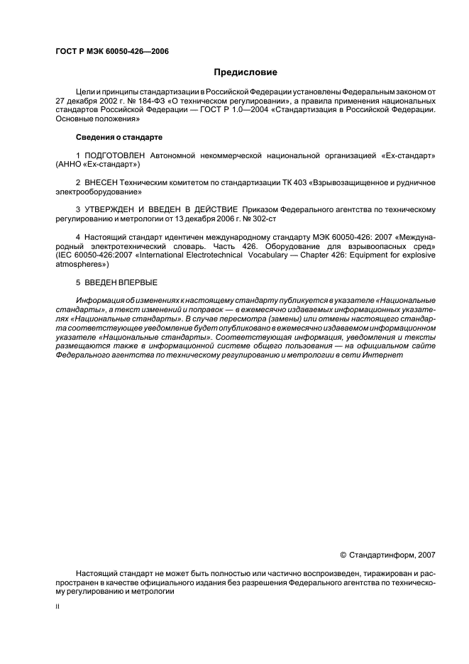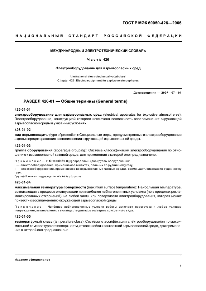 | Название рус.: | Международный электротехнический словарь. Часть 426. Электрооборудование для взрывоопасных сред |