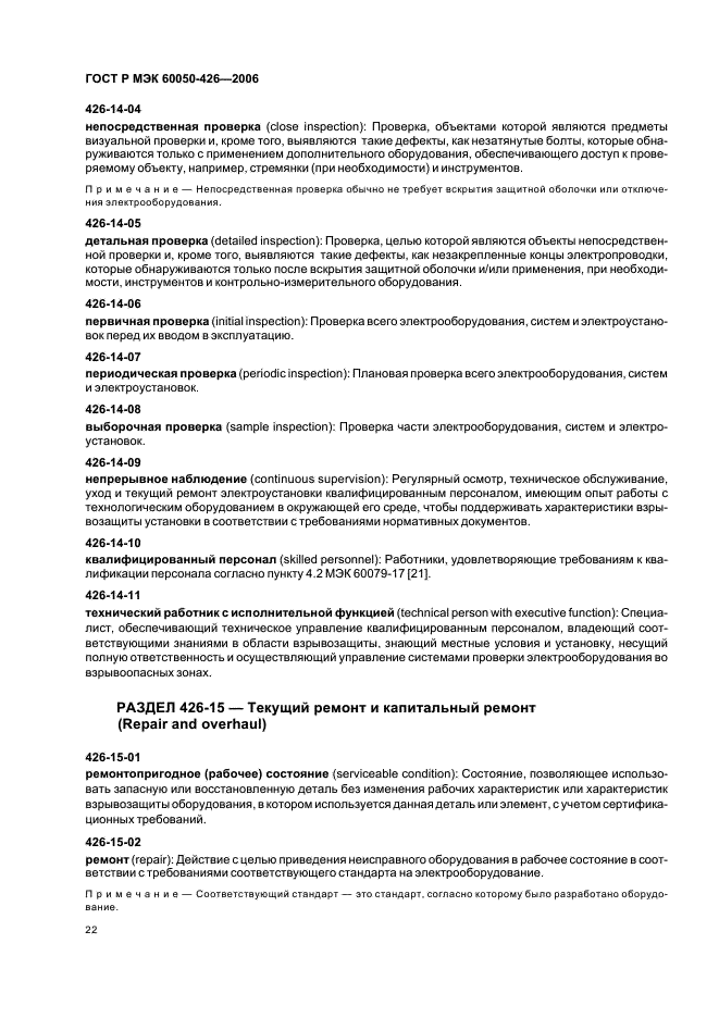 | Область и условия применения: | Стандарт содержит определения терминов, относящихся к физическим и химическим явлениям при образовании взрывоопасных сред и их воспламенении; классификации взрывоопасных сред и зон, а также видов взрывозащиты и защиты от пыли; конструкции взрывозащищенного электрооборудования и электрооборудования, применяемого в зонах, опасных по пыли; испытанию электрооборудования, его проверке, техническому обслуживанию, текущему капитальному ремонту; распределенному электронагреву |