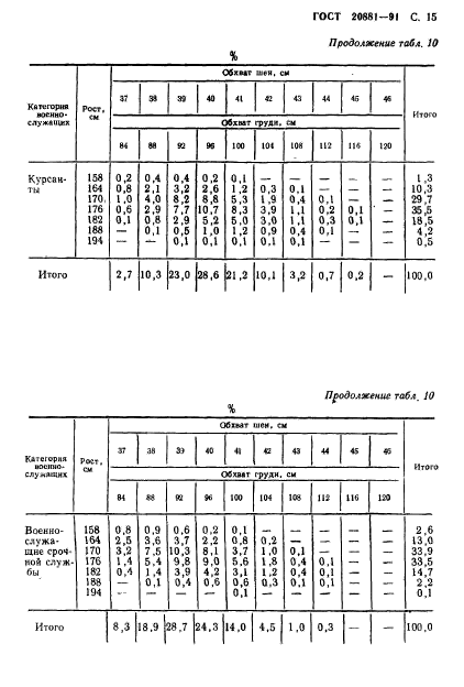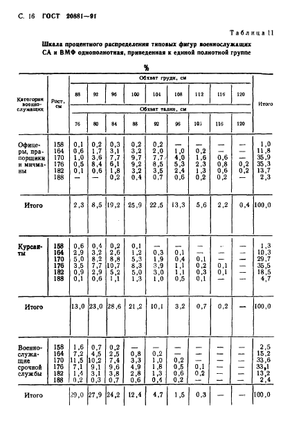 Настоящий стандарт устанавливает шкалы процентного распределения типовых фигур, обхватов головы, кисти и длины стопы военнослужащих Советской Армии и Военно-Морского флота по следующим категориям: