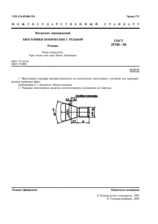 | Название англ.: | Wood-cutteng tool. Taper shanks with screw thread. Dimensions |