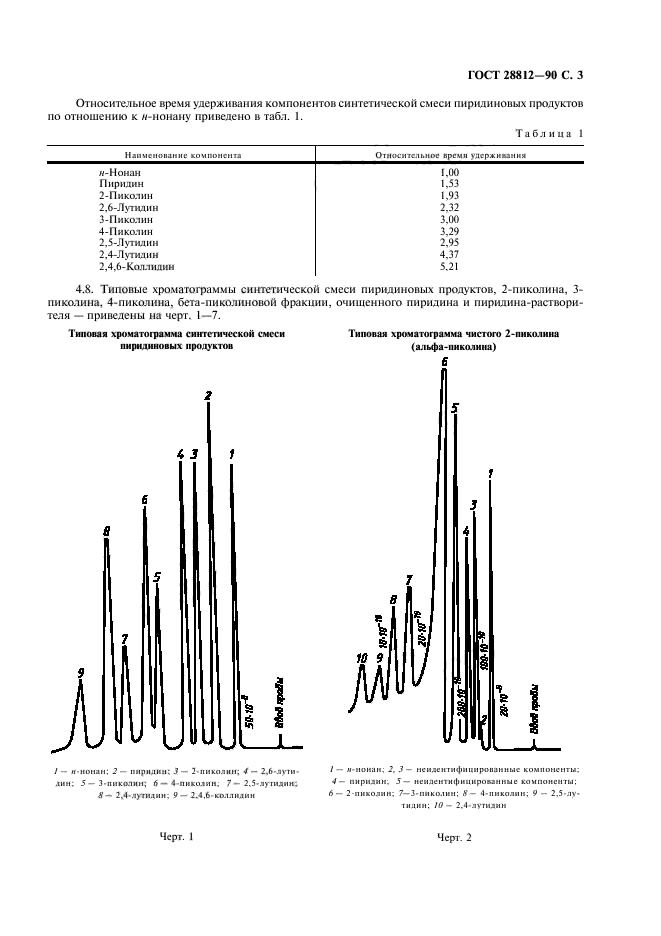 Настоящий стандарт распространяется на коксохимические пиридиновые продукты, получаемые из легких пиридиновых оснований, и устанавливает газохроматографический метод определения состава чистых продуктов: 2-пиколина (альфа-пиколина, 2-метилпиридина), 3-пиколина (бета-пиколина, 3-метилпиридина), 4-пиколина (гамма-пиколина, 4-метилпиридина), пиридина очищенного и технических пиридина-растворителя и бета-пиколиновой фракции