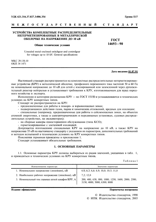 | Название англ.: | Unsealed metal-enclosed switchgear and controlgear for voltages up to 10 kV. General specifications |