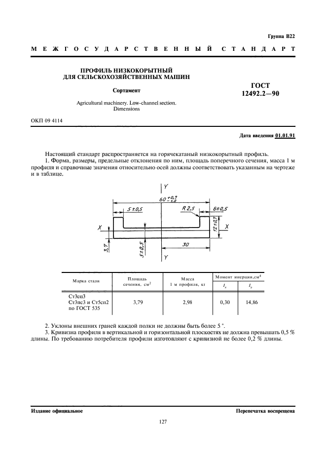 | Название рус.: | Профиль низкокорытный для сельскохозяйственных машин. Сортамент |