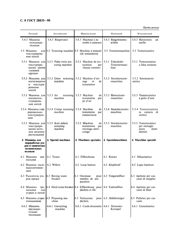 | Название рус.: | Машины предпрядильные, прядильные и крутильные. Перечень эквивалентных терминов |