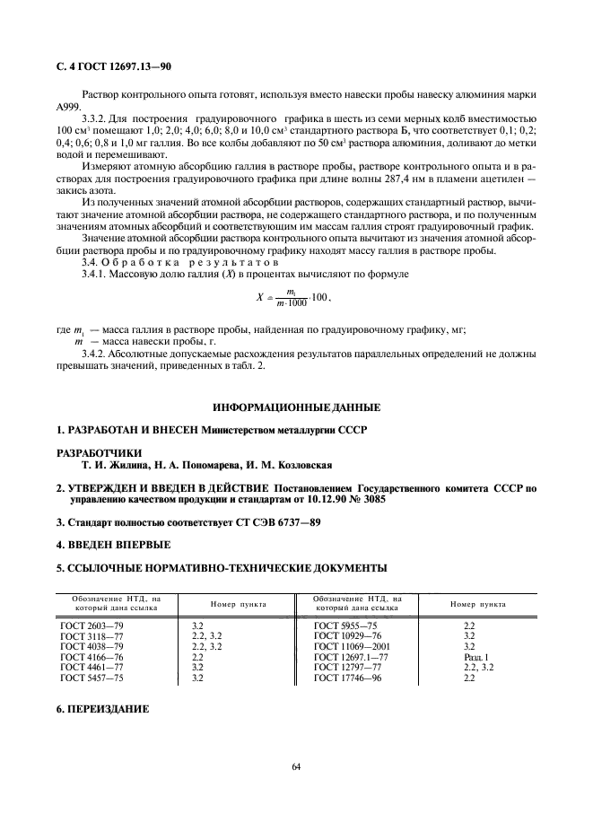 Настоящий стандарт устанавливает методы определения галлия в алюминии: фотометрический при массовой доле галлия от 0,001 до 0,1% и атомно-абсорбционный при массовой доле галлия от 0,01 до 0,1%