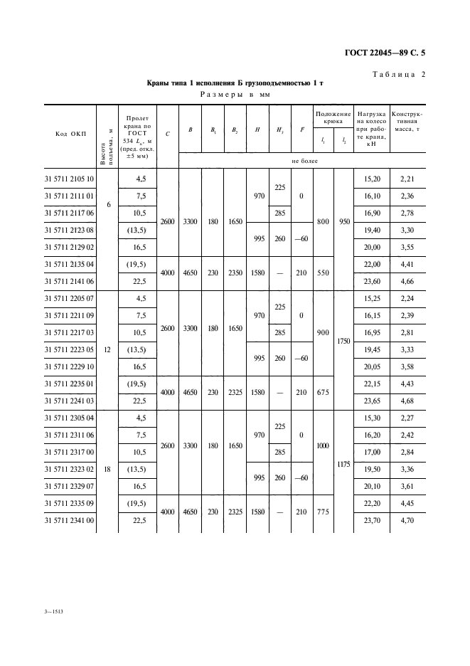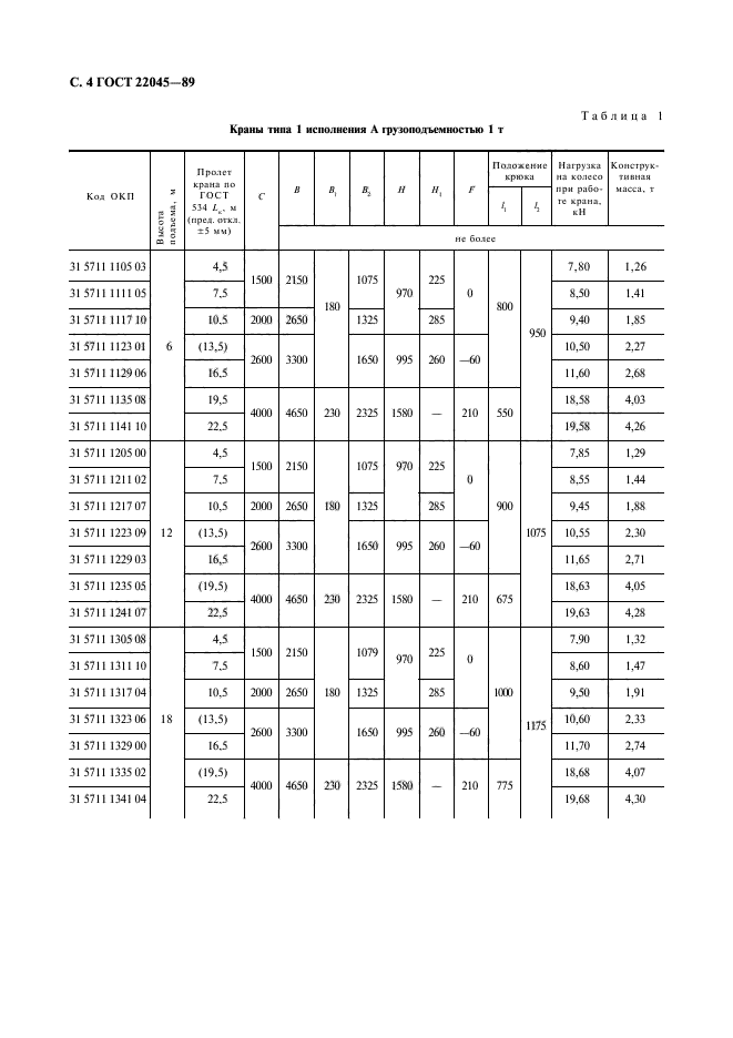 Настоящий стандарт распространяется на мостовые электрические однобалочные опорные краны, группы режима работы 3К по ГОСТ 25546 с электрической талью и электрическим механизмом передвижения, грузоподъемностью от 1 до 5 т, работающие на трехфазном токе напряжением 220, 240, 380, 400, 415 В частотой 50 Гц и напряжением 220, 380, 400, 440 В частотой 60 Гц, изготавливаемые в климатическом исполнении У и Т, категории размещения 1, 2 и 3 по ГОСТ 15150, для работы при температуре от плюс 40 до минус 40 грал. С.