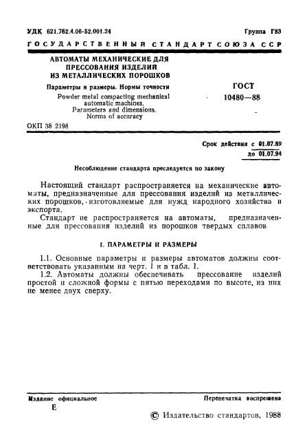 | Название англ.: | Powder metal compacting mechanical automatic machines. Parameters and dimentions. Norms of accuracy |