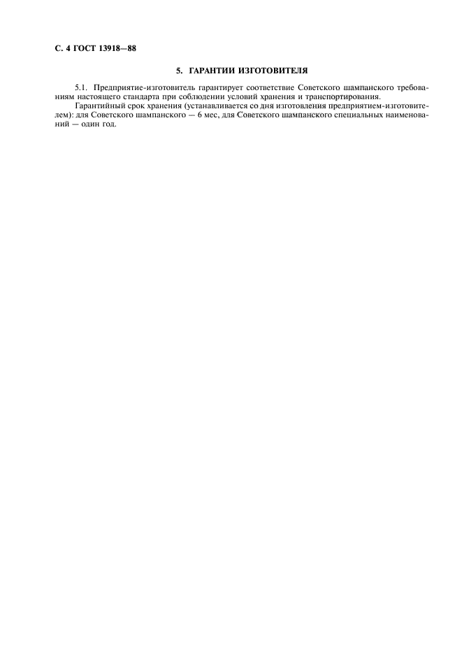 Настоящий стандарт распространяется на Советское шампанское, получаемое насыщением двуокисью углерода эндогенного происхождения при вторичном брожении обработанных виноматериалов в бутылках, резервуарах или системе резервуаров
