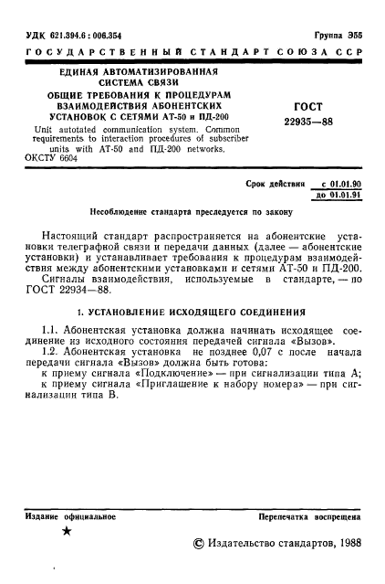 | Название англ.: | Unit automated communication system. Common requirements to interaction procedures of subscriber units with AT-50 and ПД-200 networks |