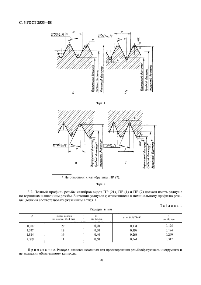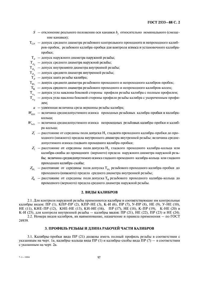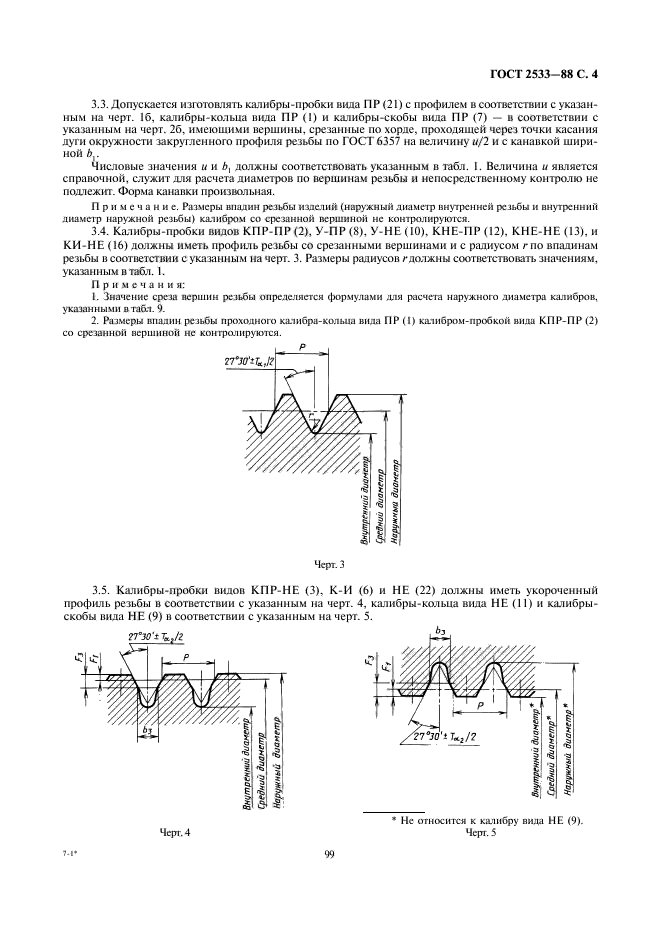 Настоящий стандарт распространяется на резьбовые и гладкие калибры для контроля трубной цилиндрической резьбы по ГОСТ 6357-81 и устанавливает виды калибров, профиль резьбы, длину рабочей части, допуски и формулы для определения размеров резьбовых и гладких калибров
