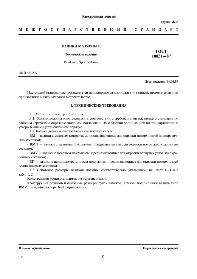 | Область и условия применения: | Настоящий стандарт распространяется на малярные валики, применяемые при производстве малярных работ в строительстве |