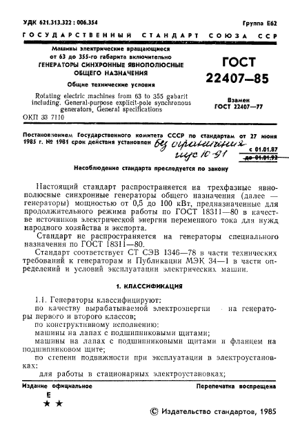 | Область и условия применения: | Настоящий стандарт распространяется на трехфазные явнополюсные синхронные генераторы общего назначения мощностью от 0,5 до 100 кВт, предназначенные для продолжительного режима работы по ГОСТ 18311-80 в качестве источников электрической энергии переменного тока для нужд народного хозяйства и экспорта.