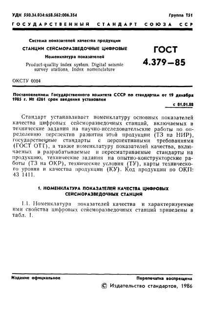 | Название англ.: | Product-quality index system. Digital seismic survey station. Index nomenclature |