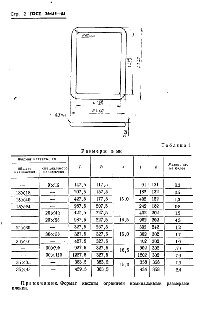 Стандарт не распространяется на кассеты со встроенными отсеивающими растрами или автоматическими рентгеноэкспонометрами, кассеты. предназначенные для одномоментной (симультанной) томографии, маммографии и педиатрии, а также на вакуумные кассеты и кассеты типов КР, КРЦ |