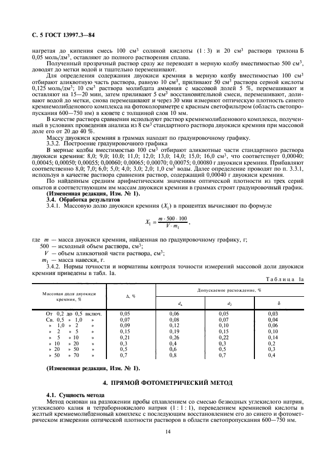| Область и условия применения: | Настоящий стандарт устанавливает методы определения двуокиси кремния в материалах и изделиях огнеупорных цирконийсодержащих: гравиметрический солянокислый с последующим фотометрированием в растворе кремниевой кислоты (при массовой доле двуокиси кремния от 2,0 до 70 %) для огнеупорных материалов и изделий с массовой долей двуокиси циркония до 65 % (кроме бадделеитовых); дифференциальный фотометрический метод - (при массовой доле двуокиси кремния от 20 до 40 %); прямой фотометрический метод определения двуокиси кремния в огнеупорах бадделеитовых и на основе двуокиси циркония (при массовой доле двуокиси кремния от 0,2 до 5,0 %) |