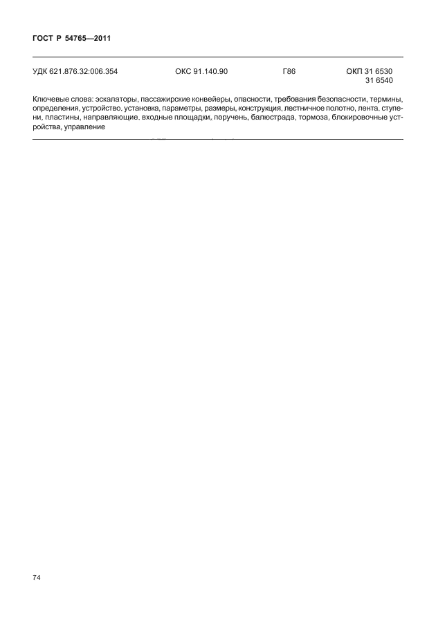 | Область и условия применения: | Настоящий стандарт устанавливает общие требования безопасности к конструкции и установке вновь изготавливаемых эскалаторов и пассажирских конвейеров (пластинчатых или ленточных).