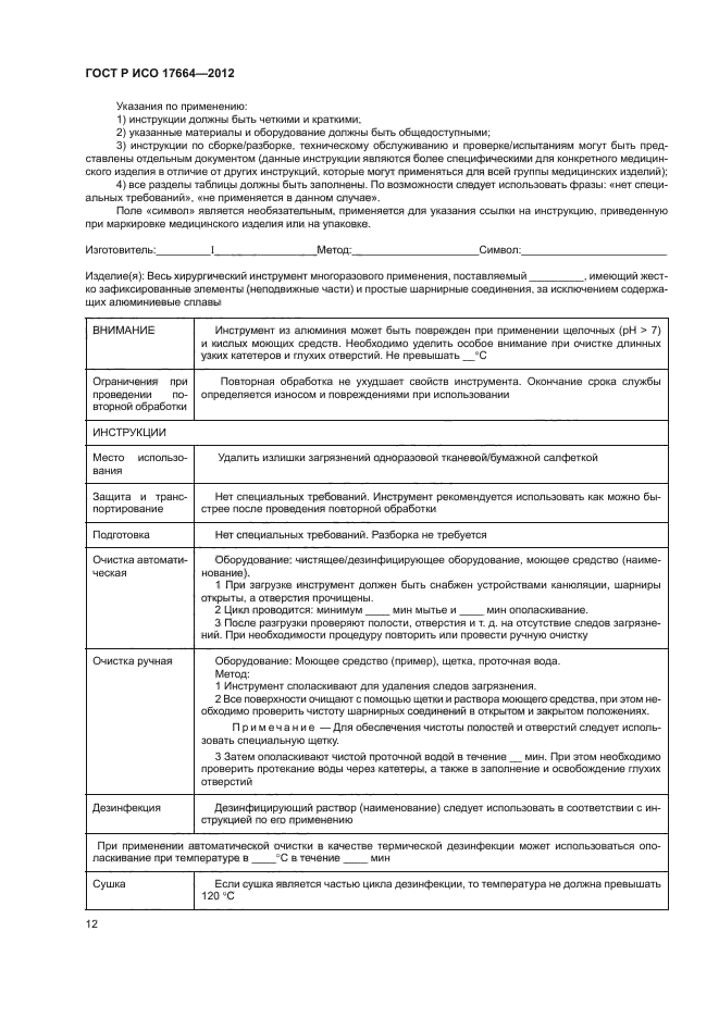 | Область и условия применения: | Настоящий стандарт устанавливает требования к информации, предоставляемой изготовителем медицинских изделий, подлежащих повторной стерилизации, а также к организациям, занимающимся их обработкой.