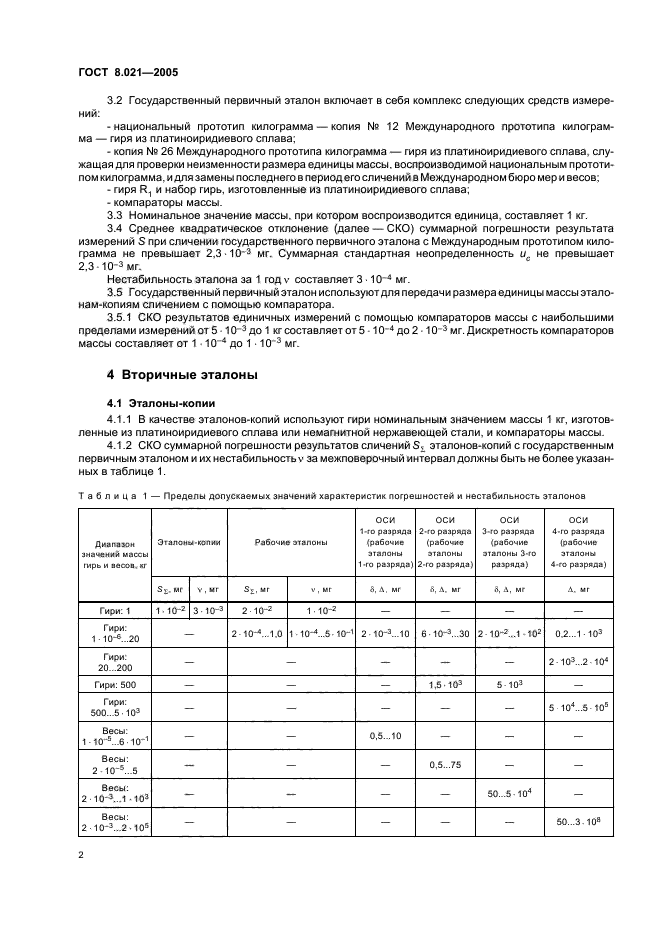 Допускается проводить поверку средств измерений массы с помощью эталонов или ОСИ более высокой точности, чем предусмотрено настоящим стандартом |