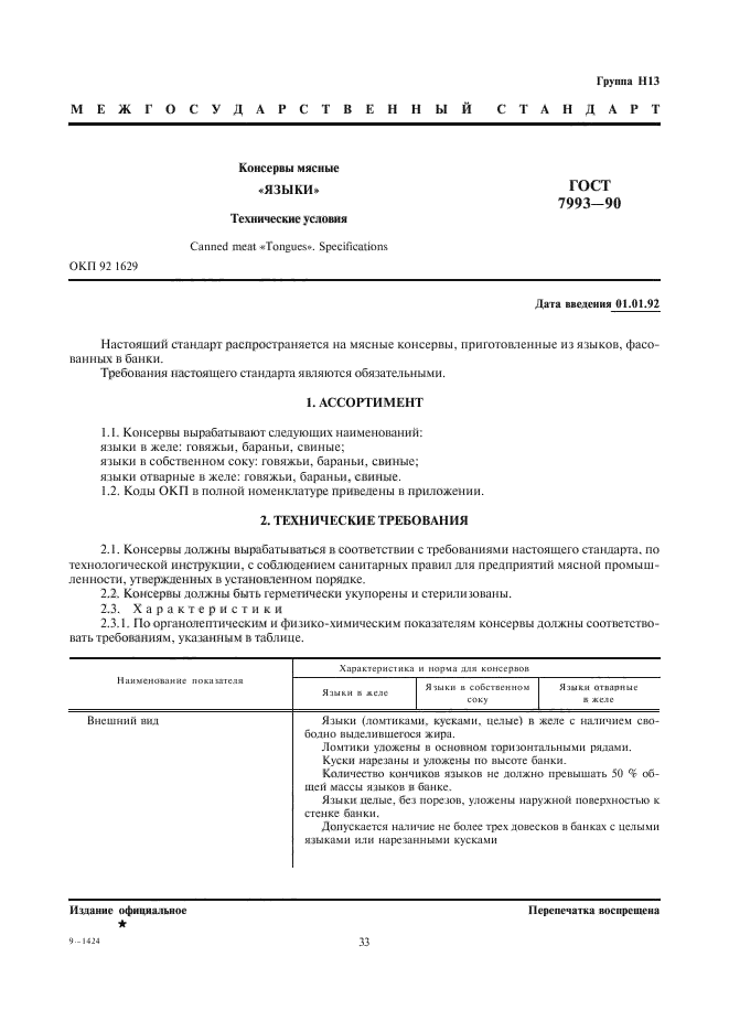 Настоящий стандарт распространяется на мясные консервы, приготовленные из языков, фасованных в банки