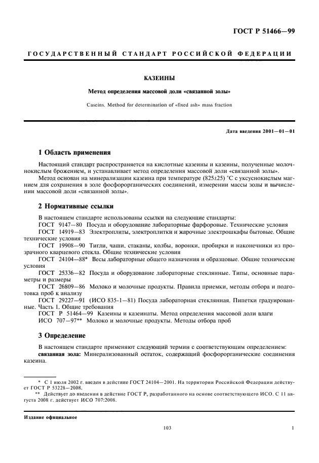 | Название англ.: | Caseins. Method for determination of "fixed ash" mass fraction |