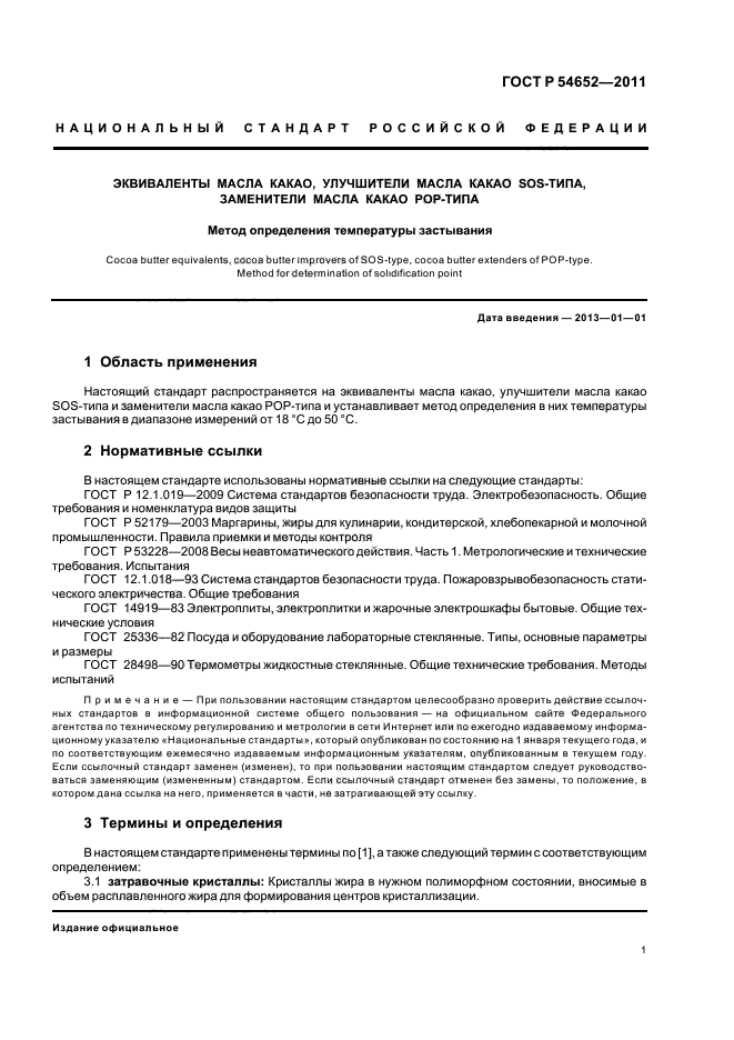Настоящий стандарт распространяется на эквиваленты масла какао, улучшители масла какао SOS-типа и заменители масла какао POP-типа и устанавливает метод определения в них температуры застывания в диапазоне измерений от 18 град. С до 50 град. С