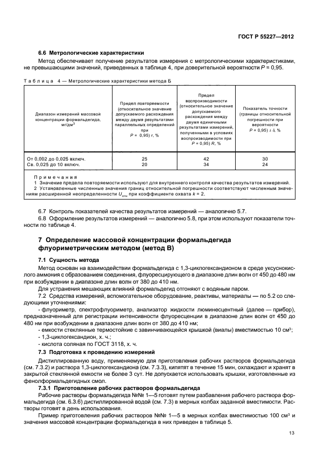- флуориметрический метод определения содержания формальдегида от 0,02 мг/дм3 до 50 мг/дм3 в пробах питьевых, природных и сточных вод (метод В)