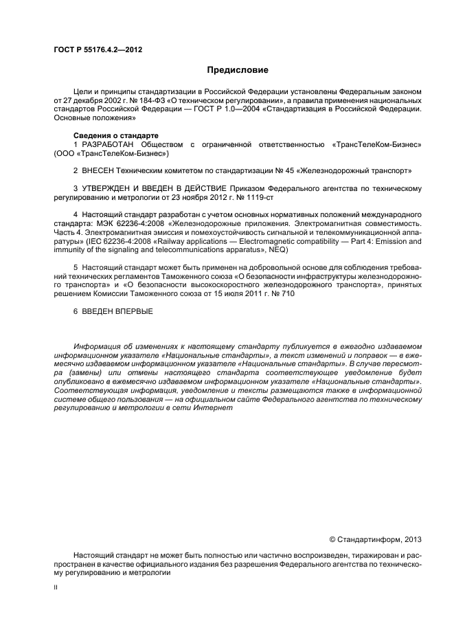 | Название англ.: | Electromagnetic compatibility of technical equipment. Railway systems and equipment. Part 4-2. Emission and immunity of telecommunication equipment. Requirements and test methods |