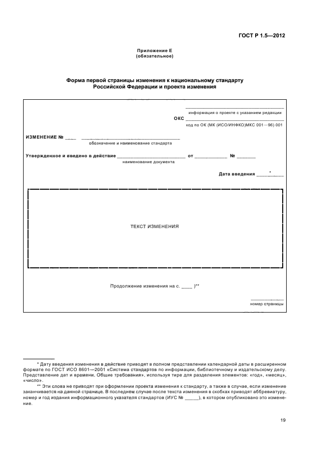 | Область и условия применения: | Настоящий стандарт устанавливает правила построения, изложения, оформления и обозначения национальных стандартов Российской Федерации и предварительных национальных стандартов, а также правила оформления и изложения изменений к национальным стандартам Российской Федерации.