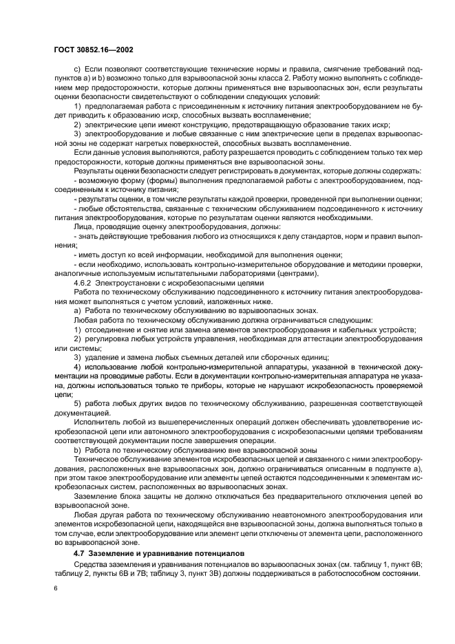 Стандарт не содержит требований к электроустановкам общего назначения, а также не распространяется на электрооборудование группы I, применяемое в подземных выработках, опасных по рудничному газу |
