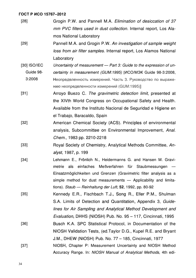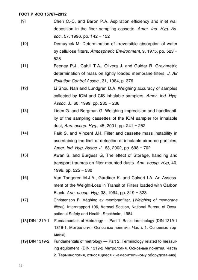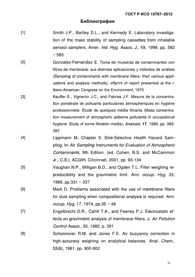 | Область и условия применения: | Настоящий стандарт устанавливает рекомендации по снижению неопределенности, связанной со взвешиванием проб аэрозолей и обусловленной нестабильностью улавливающего материала, подлежащего взвешиванию. Под улавливающим материалом или пылеуловителем понимают любое средство, предназначенное для улавливания частиц взвешенных в воздухе (например, фильтр, пористый материал), а также элементы пробоотборника, которые должны быть взвешены.