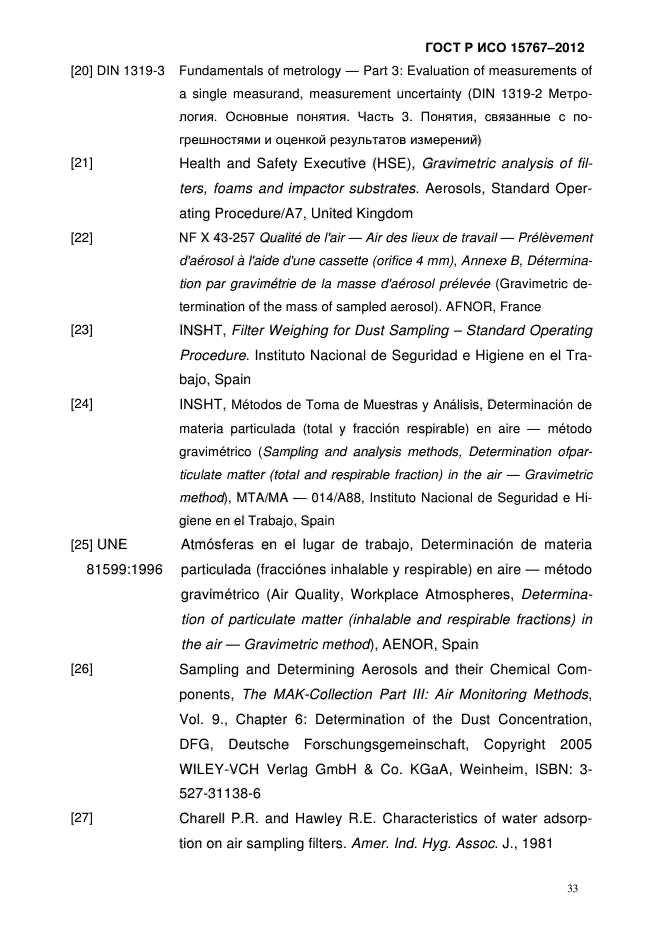 | Название рус.: | Воздух рабочей зоны. Контроль и оценка неопределенности взвешивания проб аэрозолей |