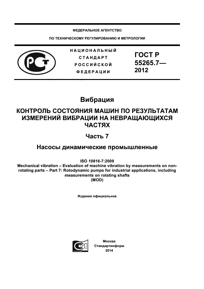 | Название рус.: | Вибрация. Контроль состояния машин по результатам измерений вибрации на невращающихся частях. Часть 7. Насосы динамические промышленные |