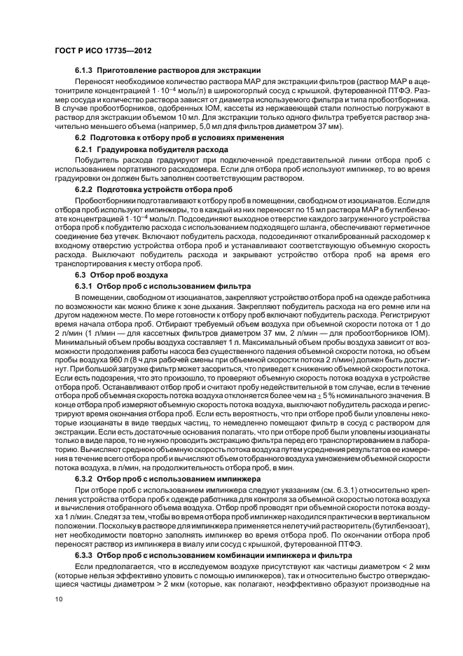 | Область и условия применения: | Настоящий стандарт устанавливает общие положения по отбору и анализу проб на содержание изоцианатов органических соединений, присутствующих в виде взвешенных частиц в воздухе рабочей зоны.
