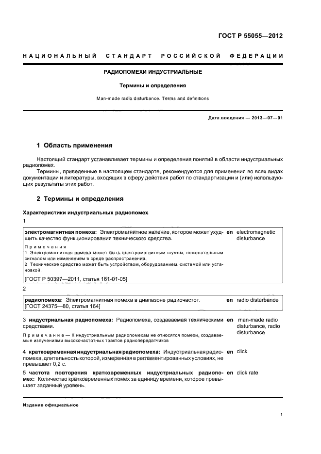 | Область и условия применения: | Настоящий стандарт устанавливает термины и определения понятий в области индустриальных радиопомех.