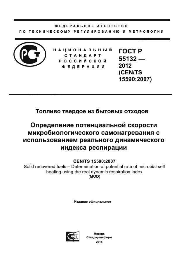 | Название рус.: | Топливо твердое из бытовых отходов. Определение потенциальной скорости микробиологического самонагревания с использованием реального динамического индекса респирации |
