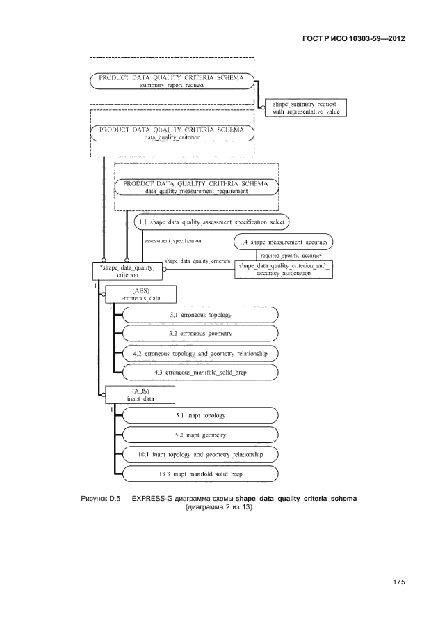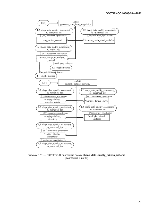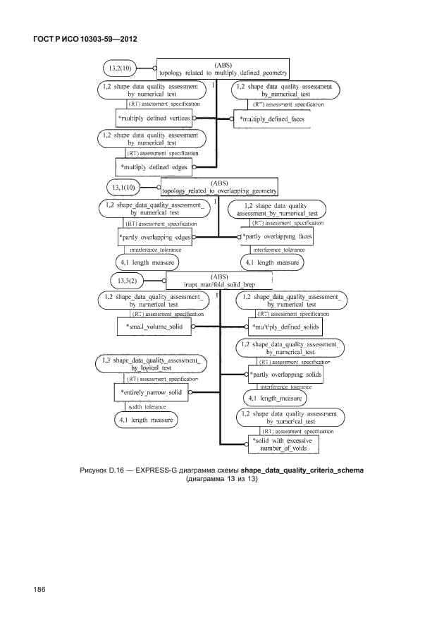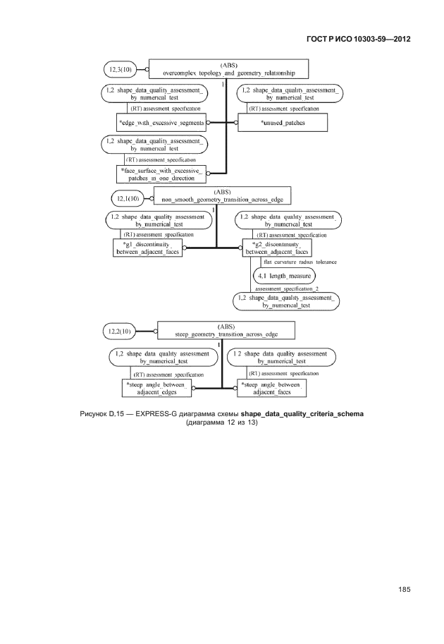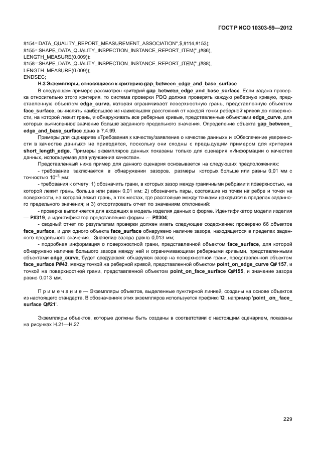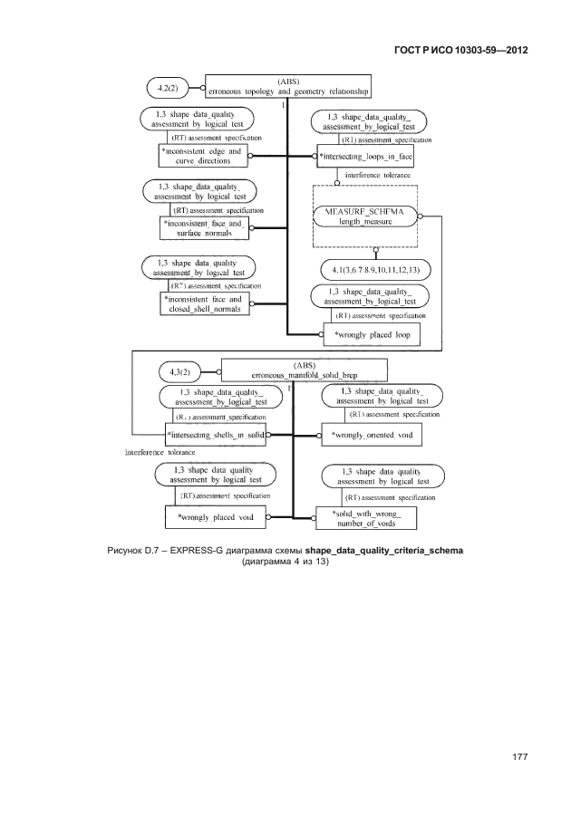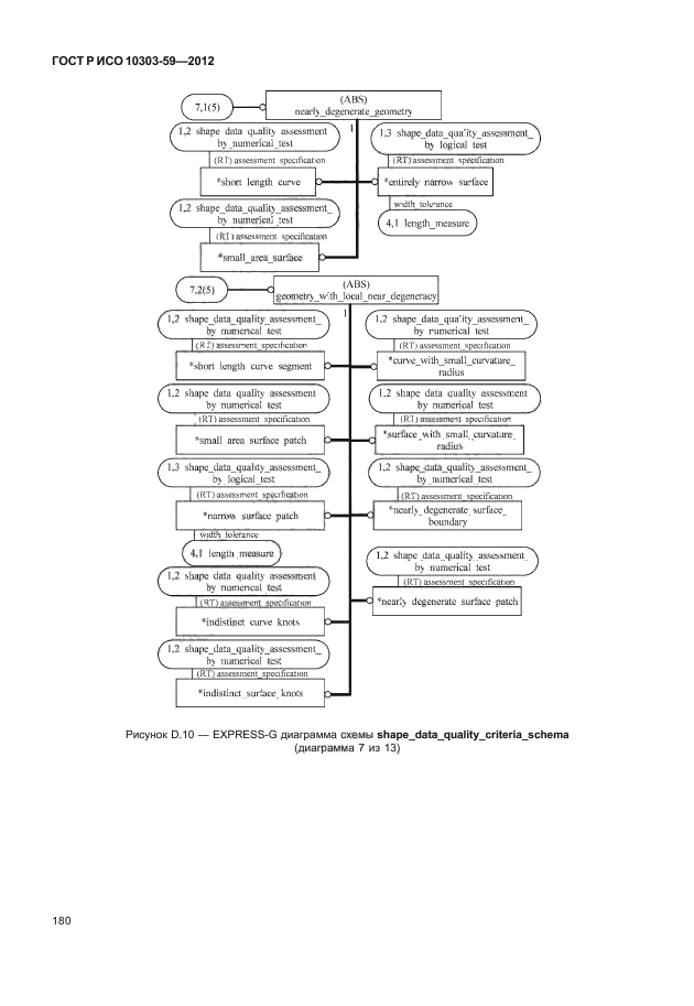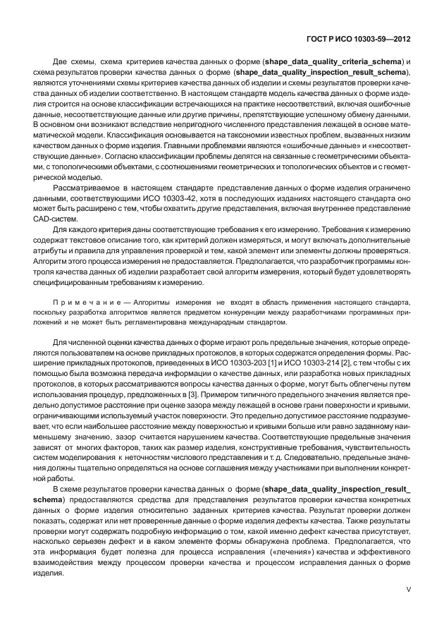 - представление критериев качества для данных о трехмерной форме изделия в сочетании с требованиями к измерениям для оценки критериев качества и связь с соответствующими спецификациями оценки: критерии качества могут быть использованы для представления требований, заявлений или гарантий качества данных о форме изделия; используемые модели данных о форме изделия - это модели, определенные в ИСО 10303-42.