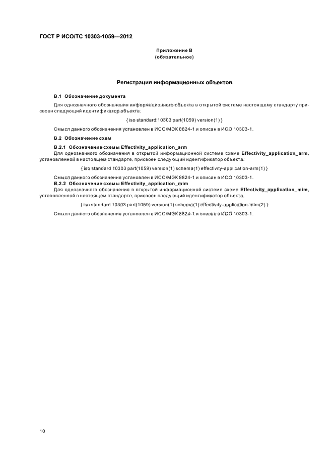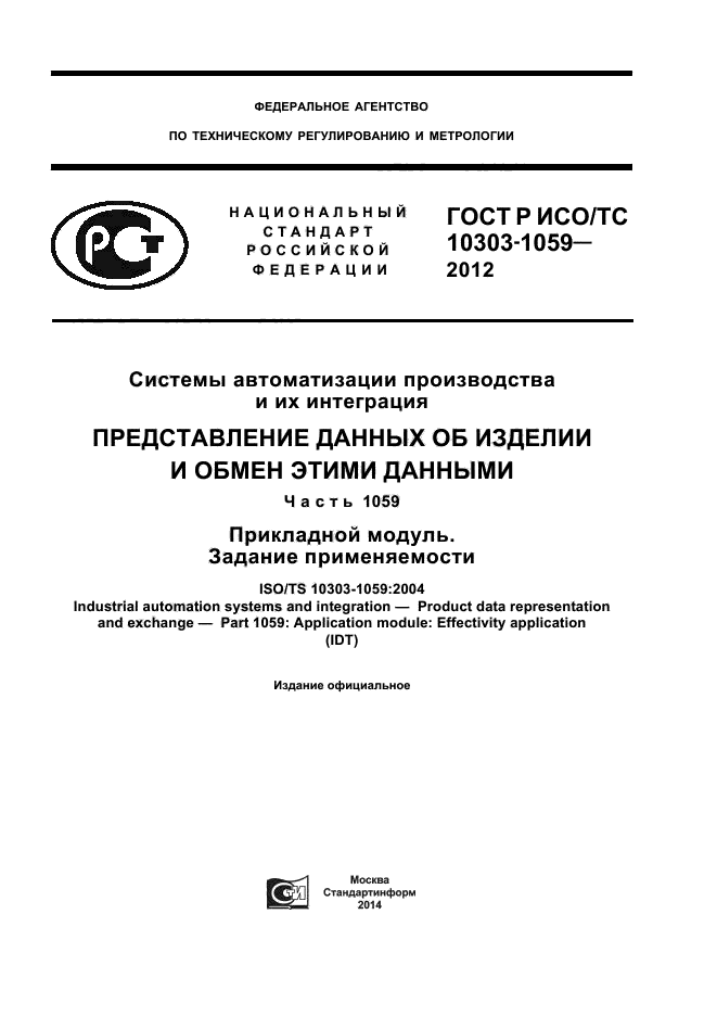 | Название рус.: | Системы автоматизации производства и их интеграция. Представление данных об изделии и обмен этими данными. Часть 1059. Прикладной модуль. Задание применяемости |