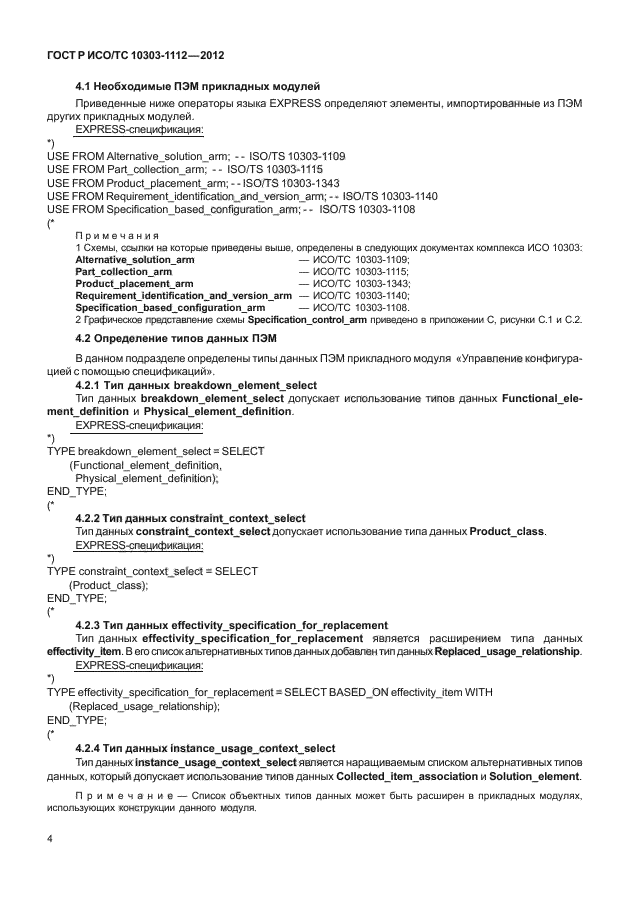 - положения, относящиеся к области применения прикладного модуля «Конфигурация на основе спецификации», установленного в ИСО/ТС 10303-1108