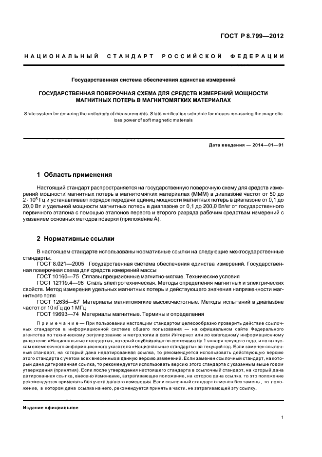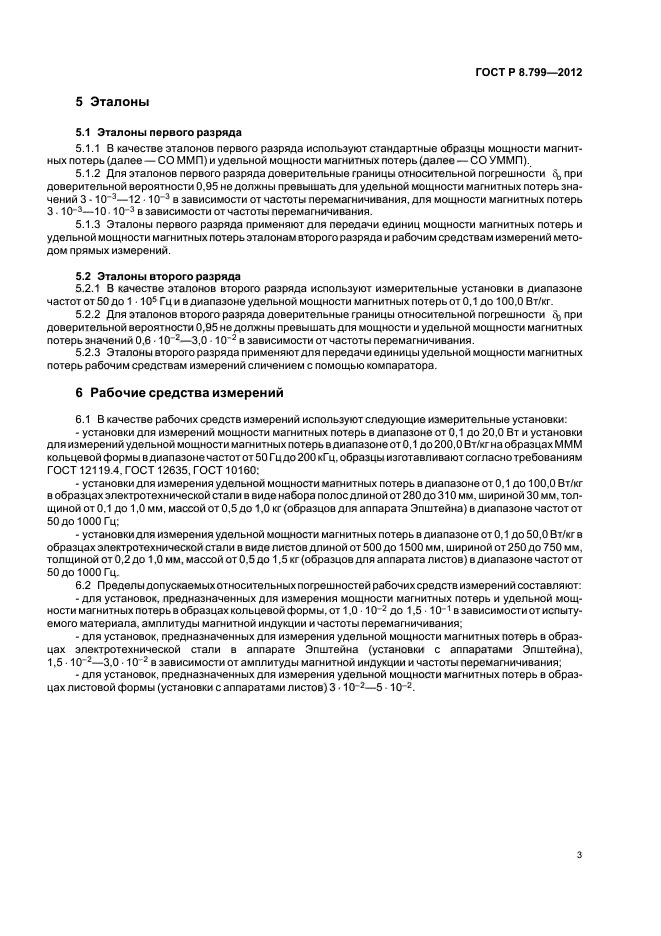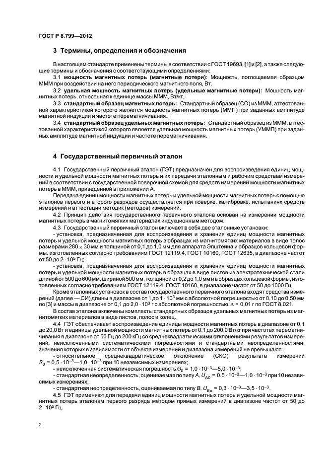 Настоящий стандарт распространяется на государственную поверочную схему для средств измерений мощности магнитных потерь в магнитомягких материалах (МММ) в диапазоне частот от 50 до 2•105 Гц и устанавливает порядок передачи единиц мощности магнитных потерь в диапазоне от 0,1 до 20,0 Вт и удельной мощности магнитных потерь в диапазоне от 0,1 до 200,0 Вт/кг от государственного первичного эталона с помощью эталонов первого и второго разряда рабочим средствам измерений с указанием основных методов поверки