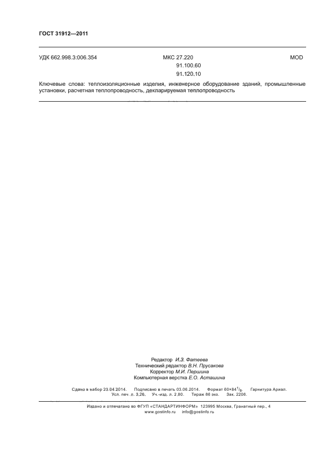 | Область и условия применения: | Настоящий стандарт устанавливает методы определения расчетной теплопроводности теплоизоляционных изделий, используемой в расчетах энергоэффективности инженерного оборудования зданий и промышленных установок, на основе декларируемой теплопроводности.