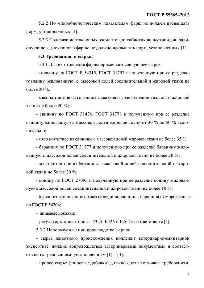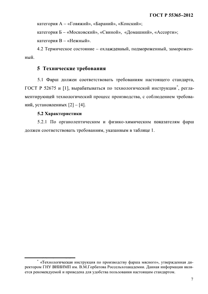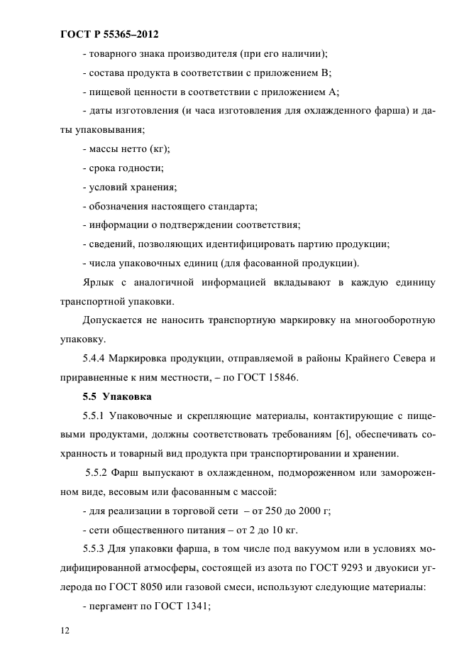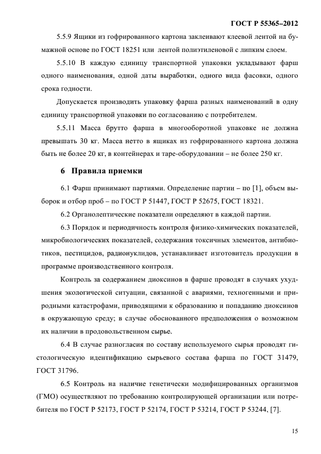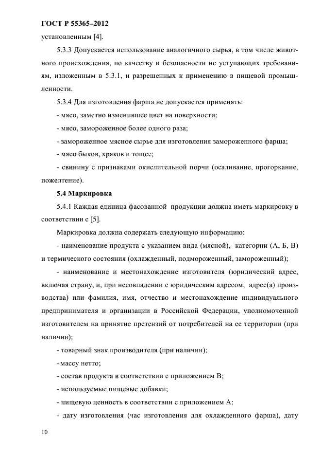 Требования к качеству фарша указаны в 5.2.1, к безопасности - в 5.2.2, 5.2.3, к маркировке - в 5.4, к упаковке - в 5.5. |