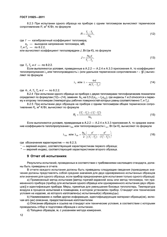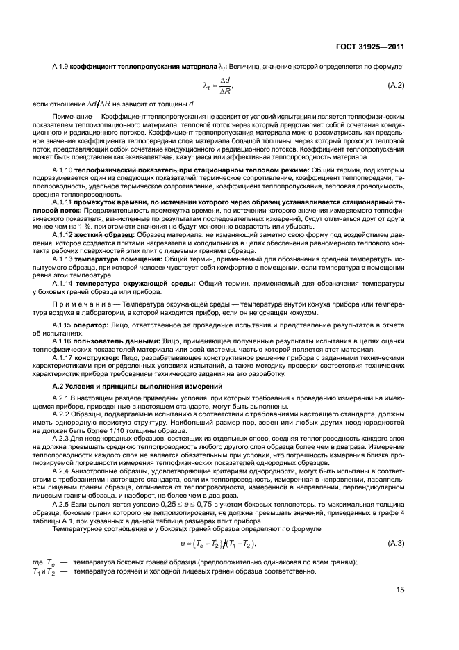 Настоящий стандарт распространяется на строительные материалы и изделия с термическим сопротивлением не менее 0,5 м кв.К/Вт и устанавливает основные принципы и порядок проведения испытаний по определению термического сопротивления на приборах с горячей охранной зоной или оснащенных тепломером в диапазоне от минимальной температуры холодильника минус 100 °С до максимальной температуры нагревателя плюс 100 °С.