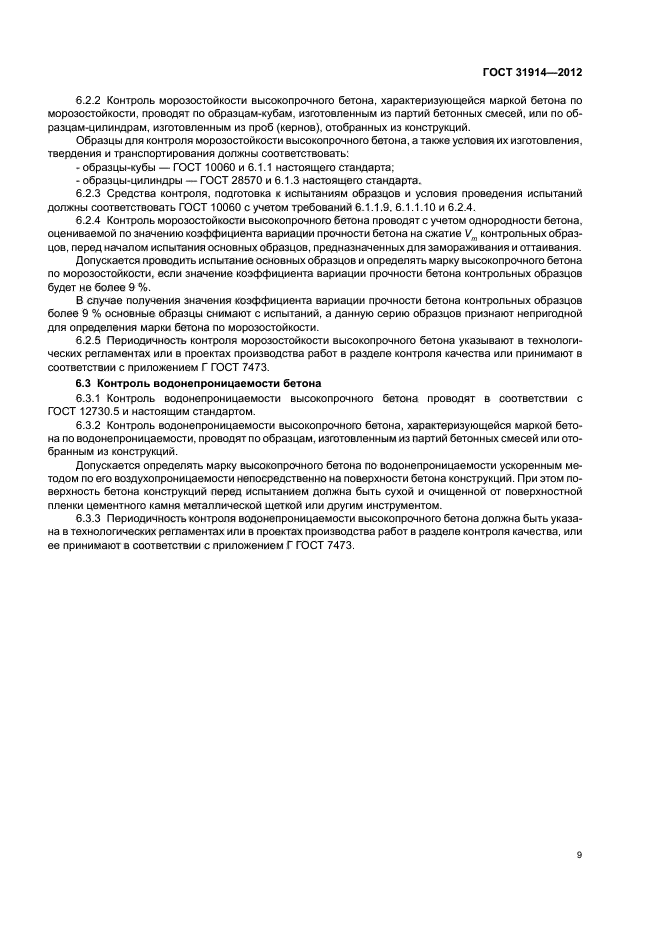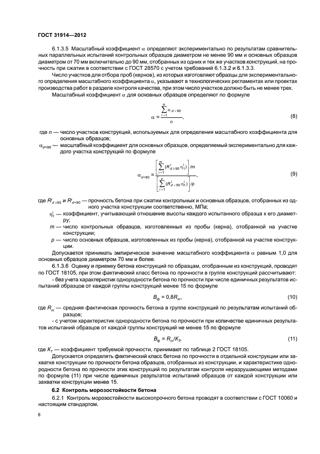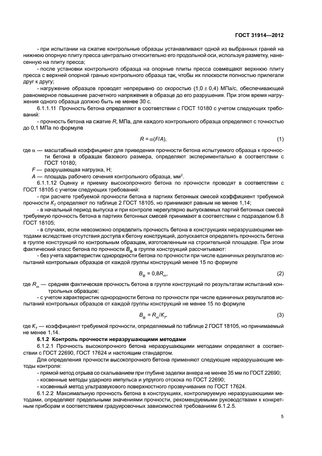 Настоящий стандарт распространяется на высокопрочные тяжелые и мелкозернистые бетоны классов по прочности при сжатии В60 и выше, предназначенные для монолитных конструкций, эксплуатируемых и находящихся на стадии строительства, и устанавливает правила определения, контроля и оценки прочности, морозостойкости и водонепроницаемости с учетом специфики свойств и особенностей испытаний высокопрочных тяжелых и мелкозернистых бетонов