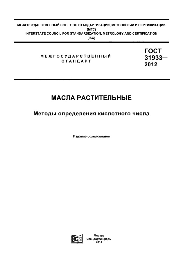 | Область и условия применения: | Настоящий стандарт распространяется на растительные масла и устанавливает методы определения кислотного числа |