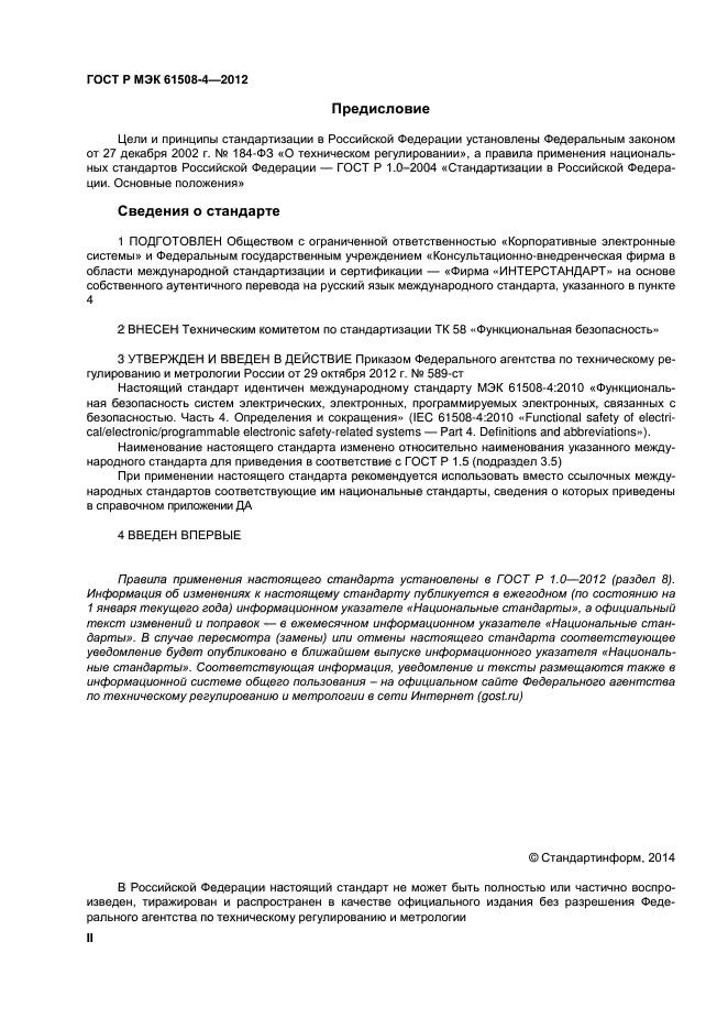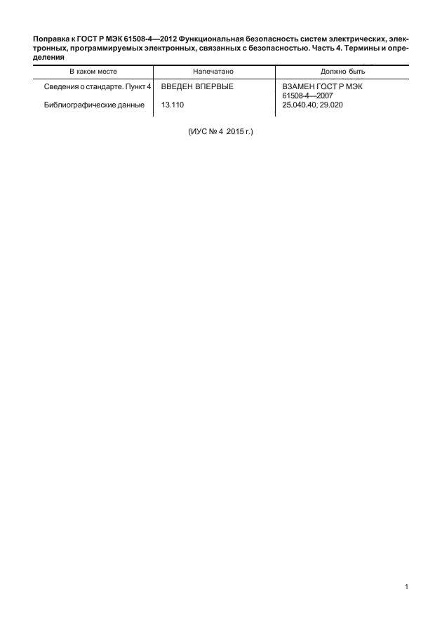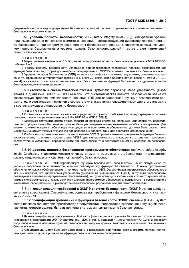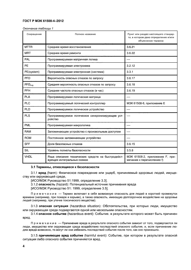 | Название рус.: | Функциональная безопасность систем электрических, электронных, программмируемых электронных связанных с безопасностью. Часть 4. Термины и определения |